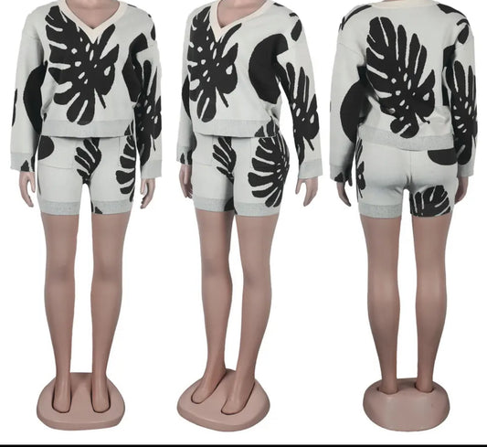 Women's 2 piece long sleeve sweater and elastic waistband shorts set. Leaf outfit is soft,...