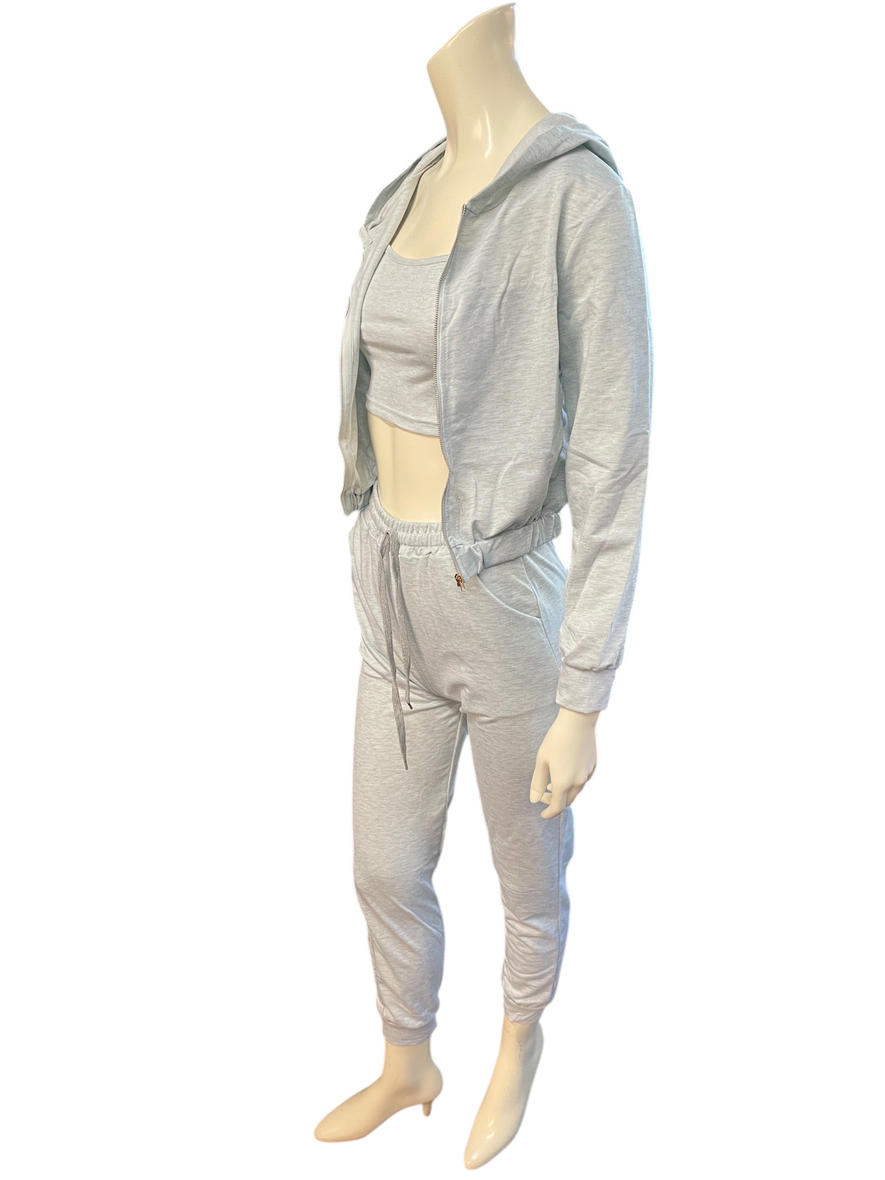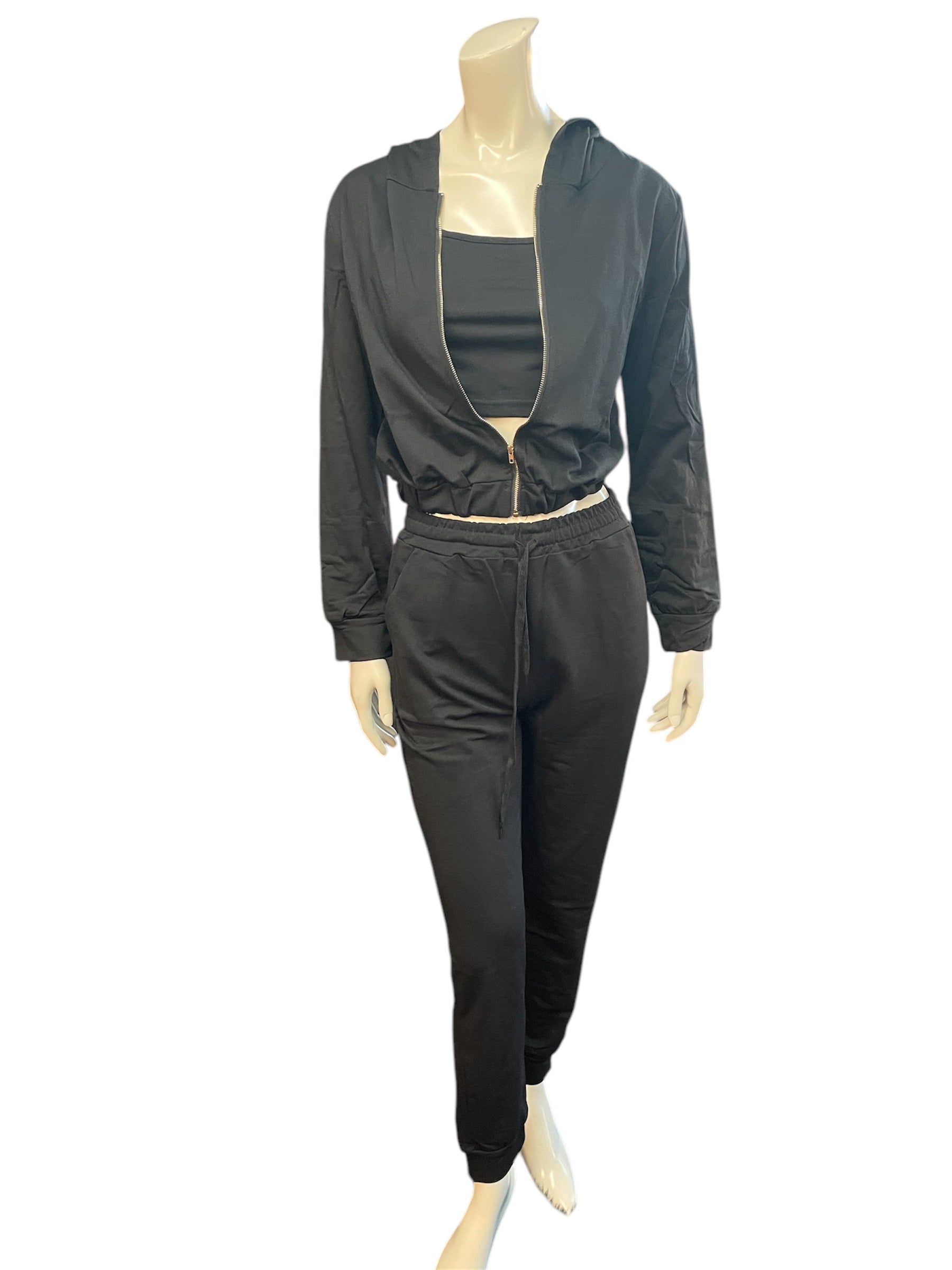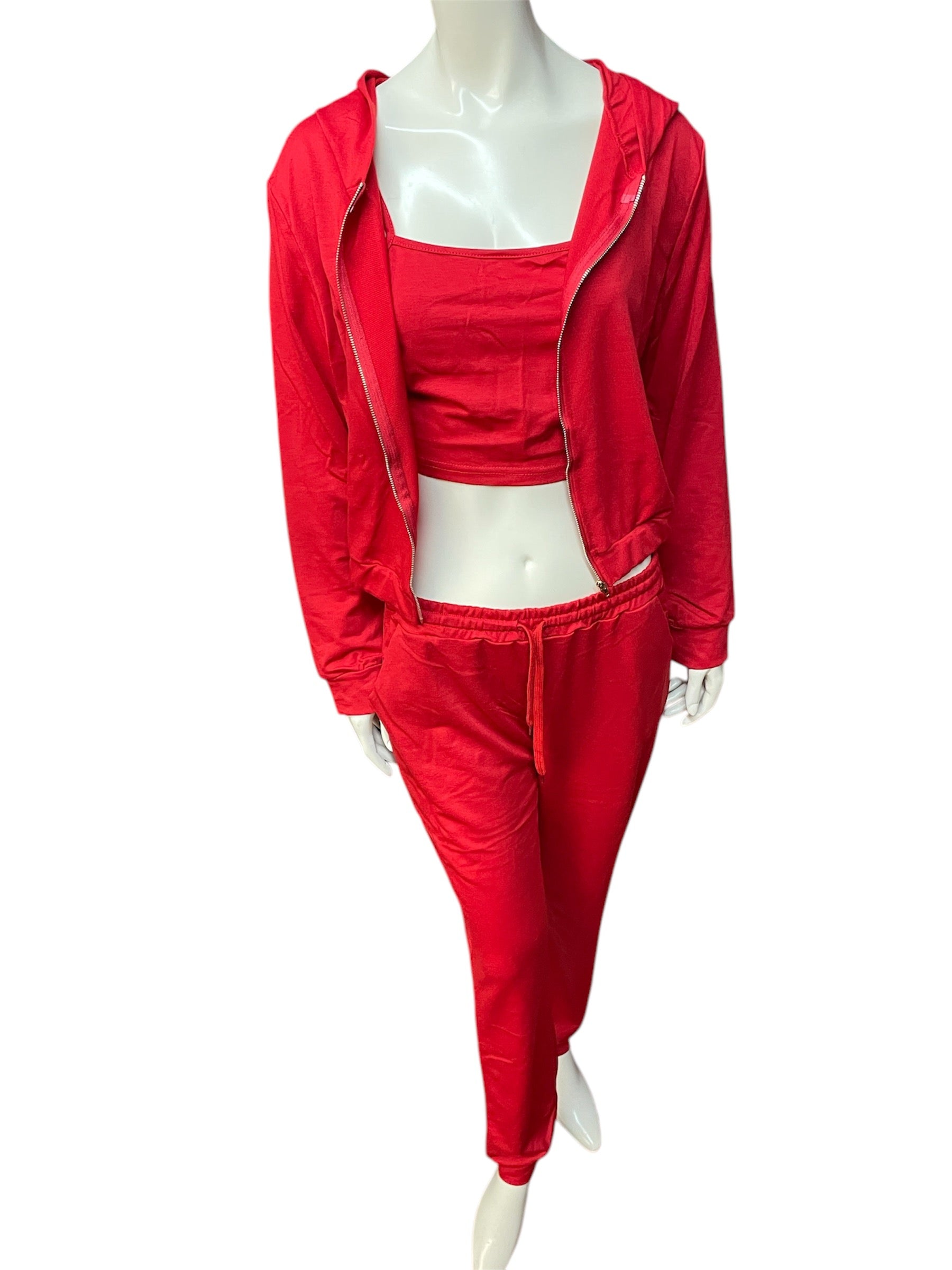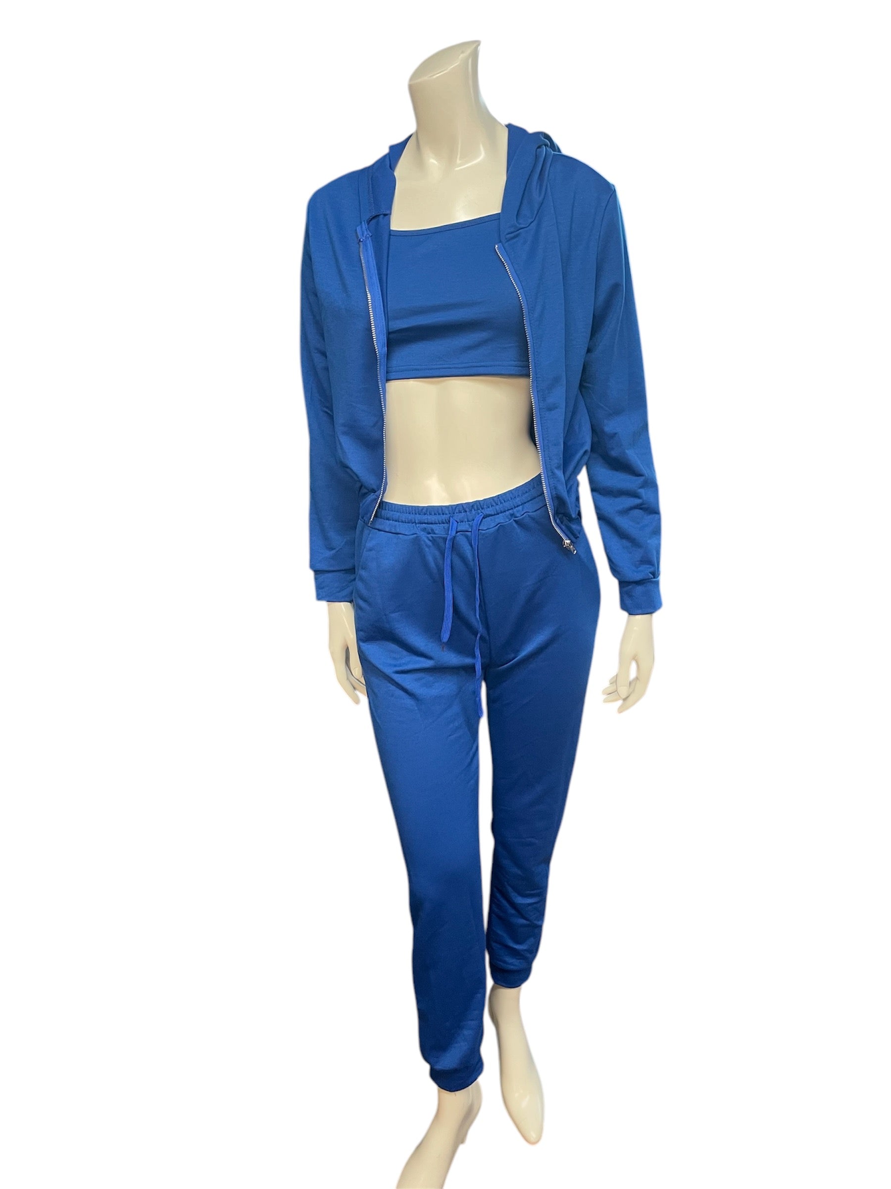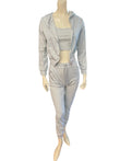 3 Piece Long Sleeve Zip Up Jacket and Long Pants Track Suit Set With Cami Crop Top Lounge