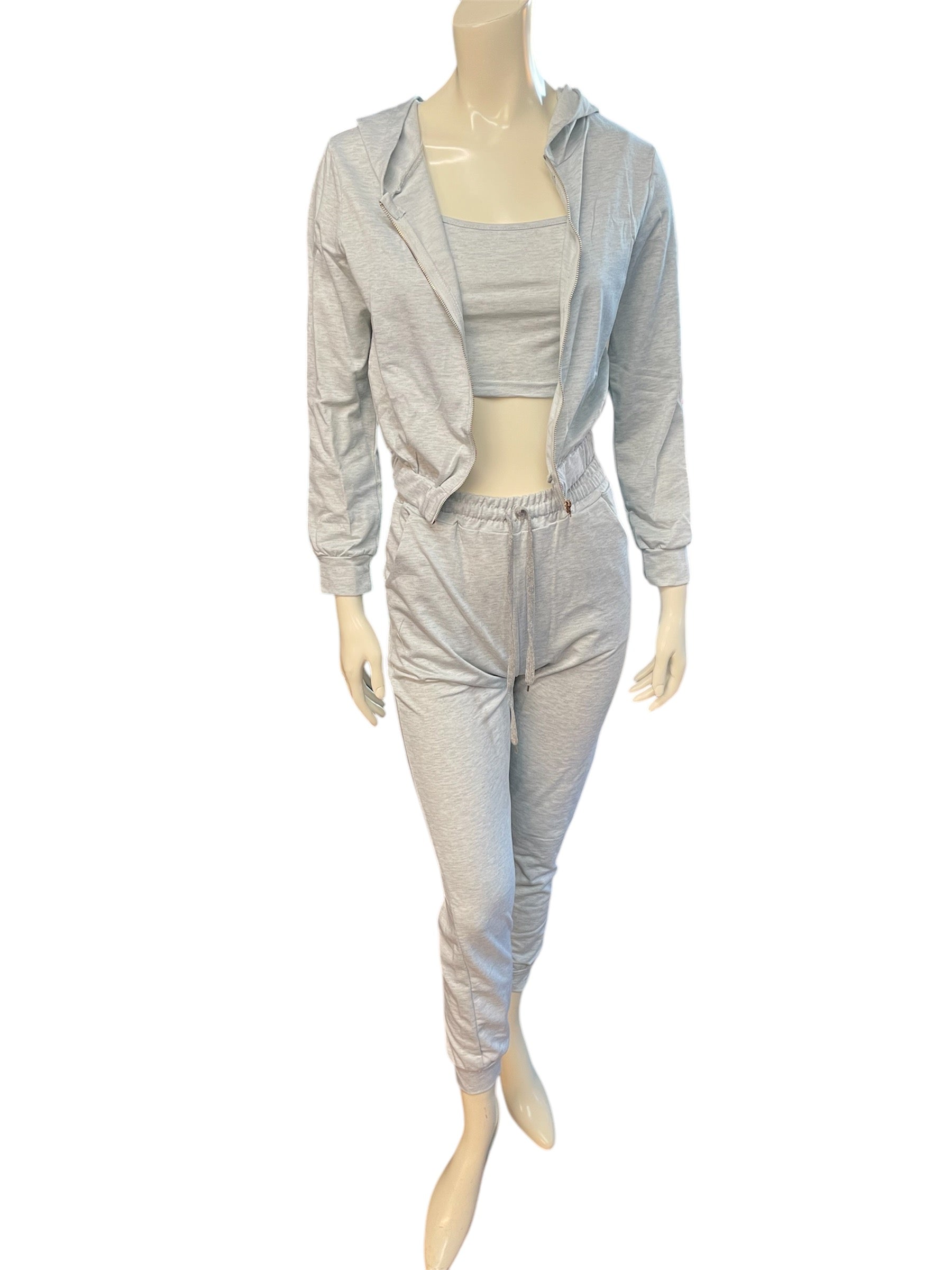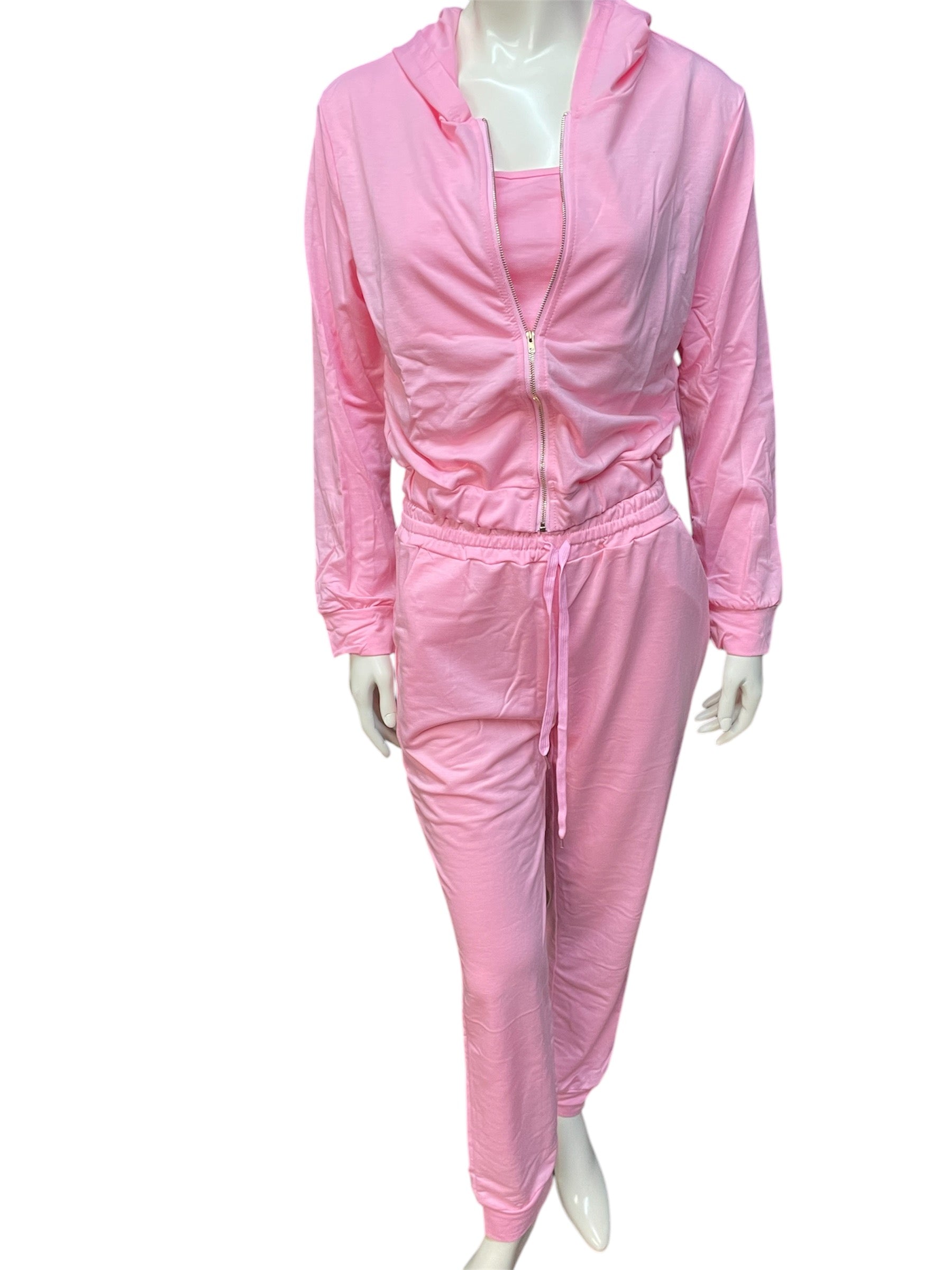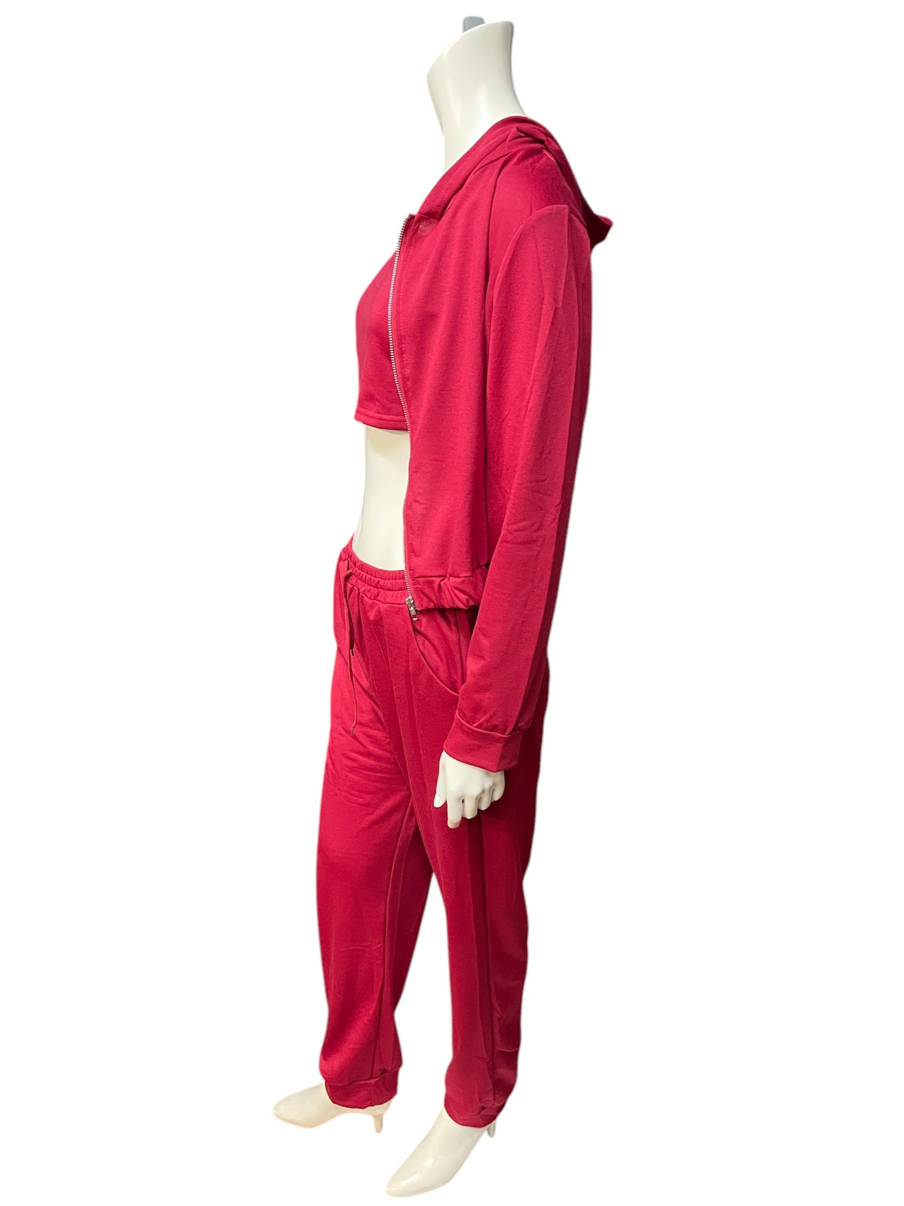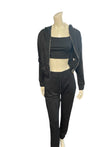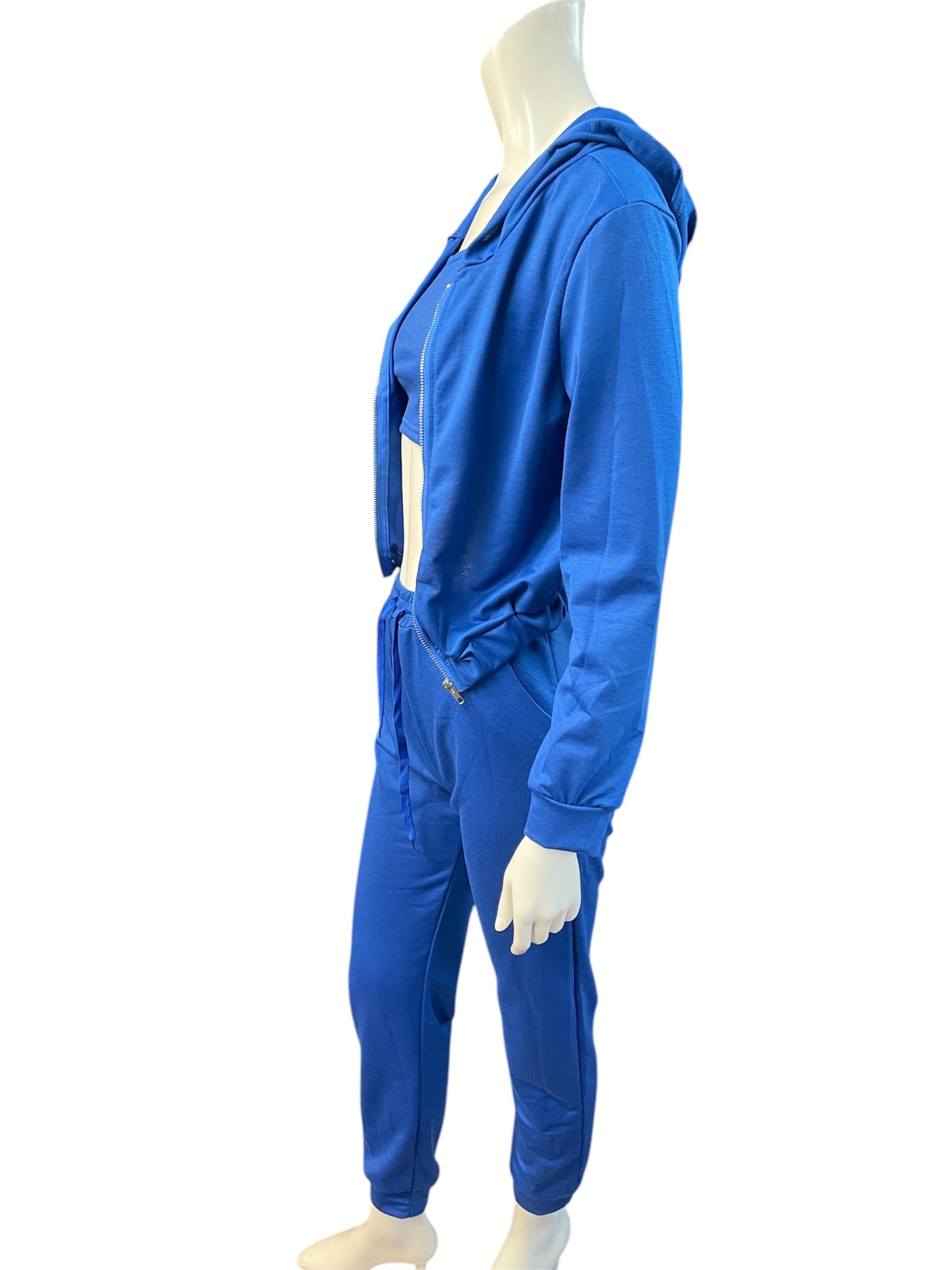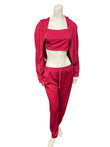 3 Piece Long Sleeve Zip Up Jacket and Long Pants Track Suit Set With Cami Crop Top Lounge