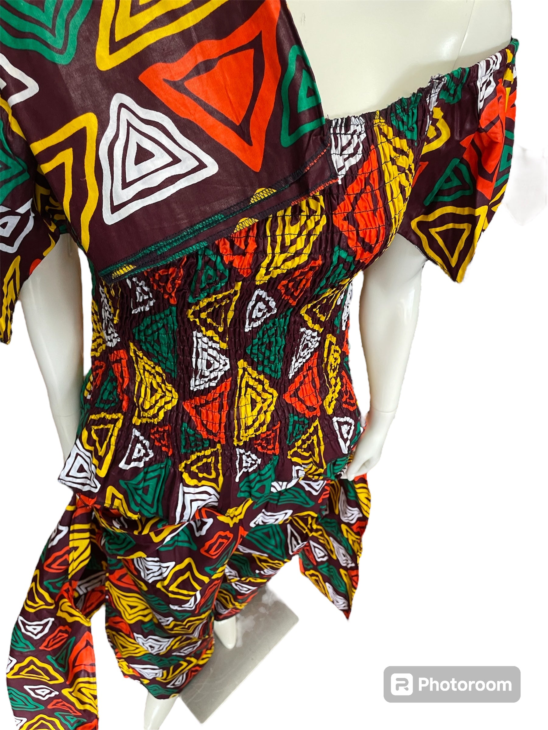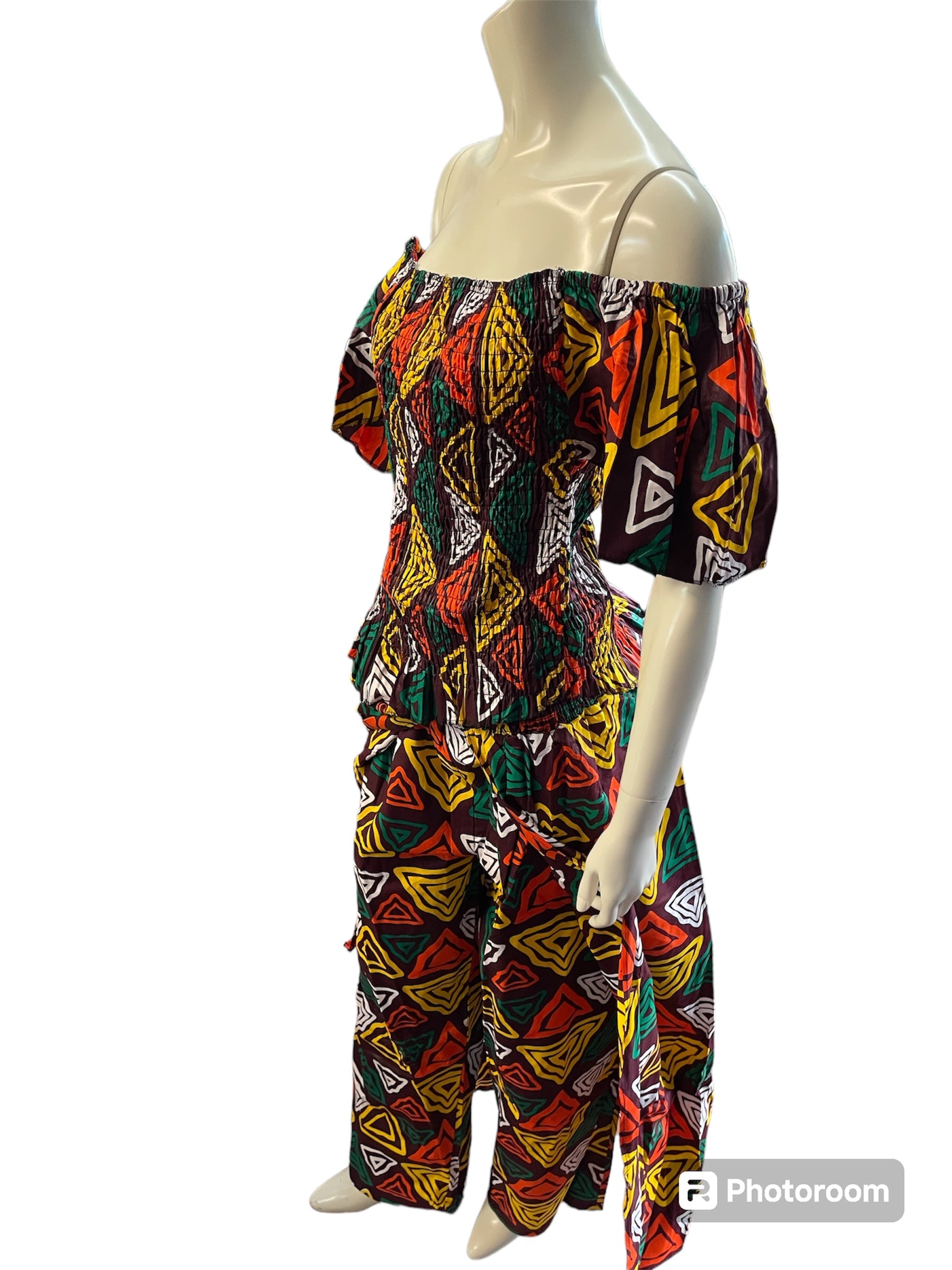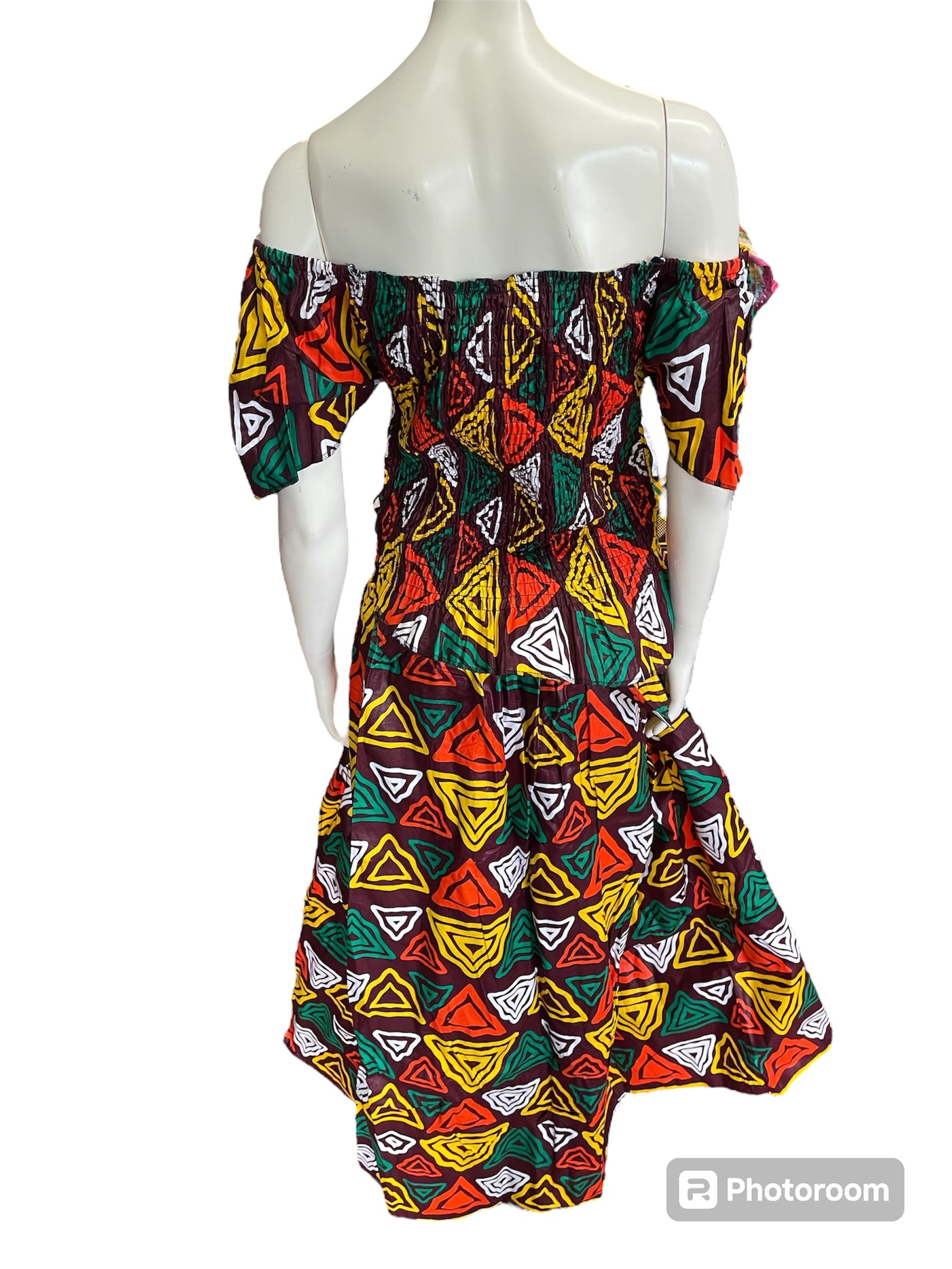 African Shirred 2 Piece Off the Shoulder Top and Long Skort