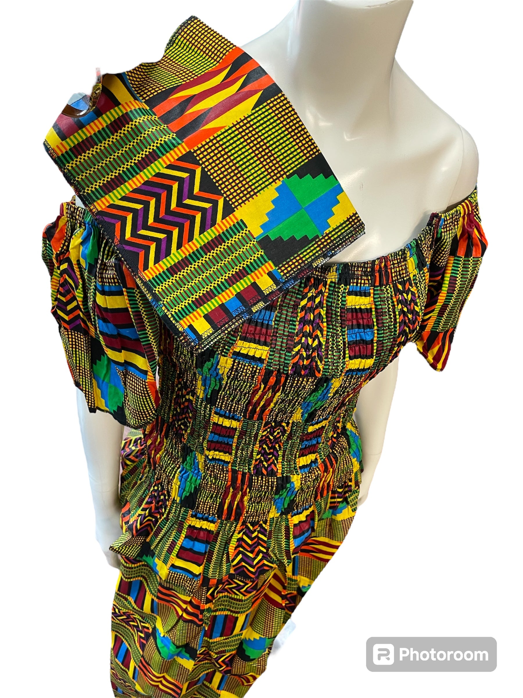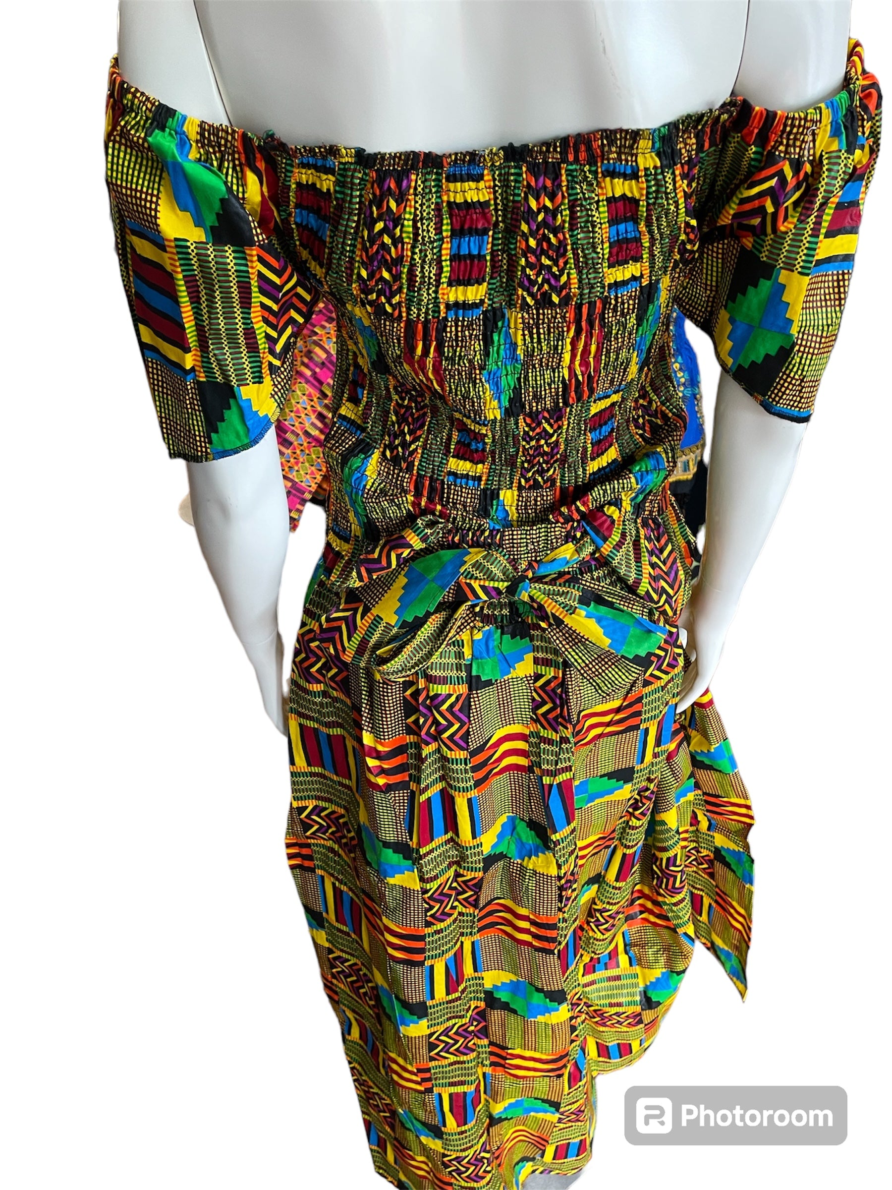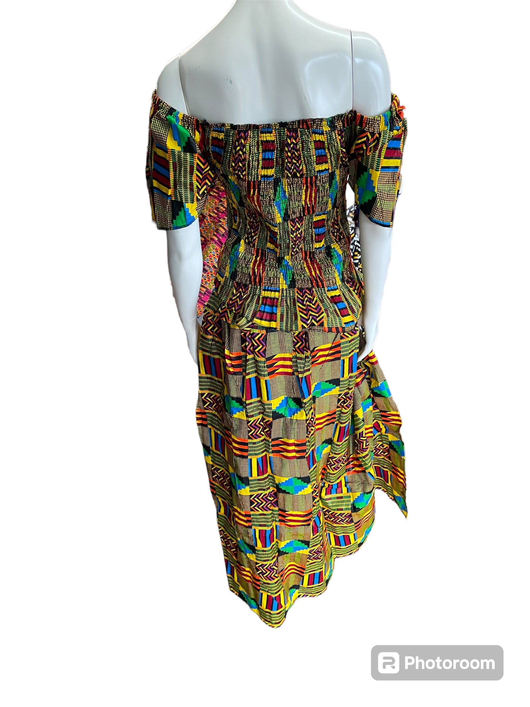 African Shirred 2 Piece Off the Shoulder Top and Long Skort