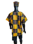 Men's African Tunic. There is a pocket on shirt. The Tunic shirt is made of 100% Cotton. The shirt is a Free Size. Comes with matching Kufi cap.