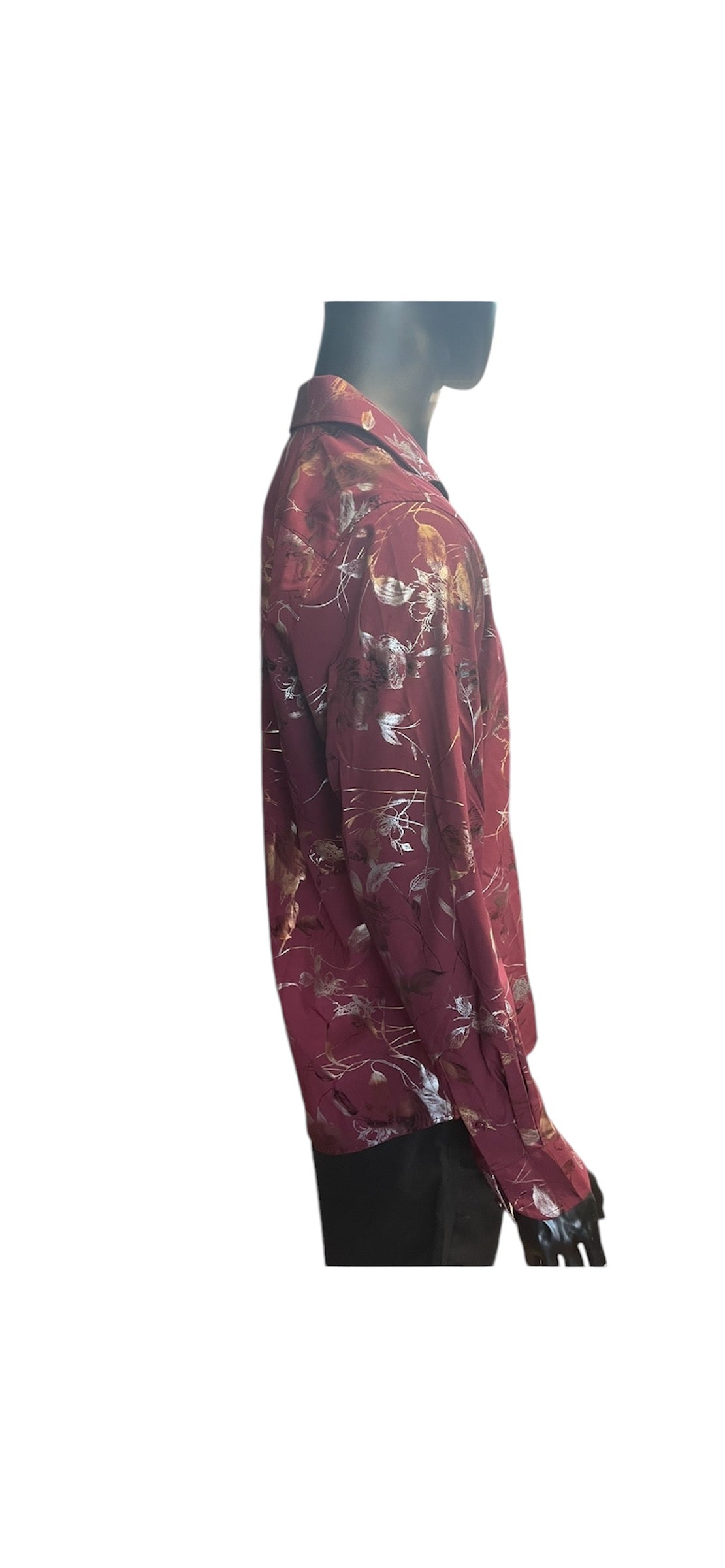 This men's button up dress shirt can be dressed up or down. It does not have a shirt pocket. It also is 100% cotton. This is a high quality dress shirt. Please make sure to follow the care instructions This dress shirt comes in a Large or Extra Large.