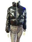 Shiny Black Cropped Long Sleeve Zip-Up Puffer Jacket