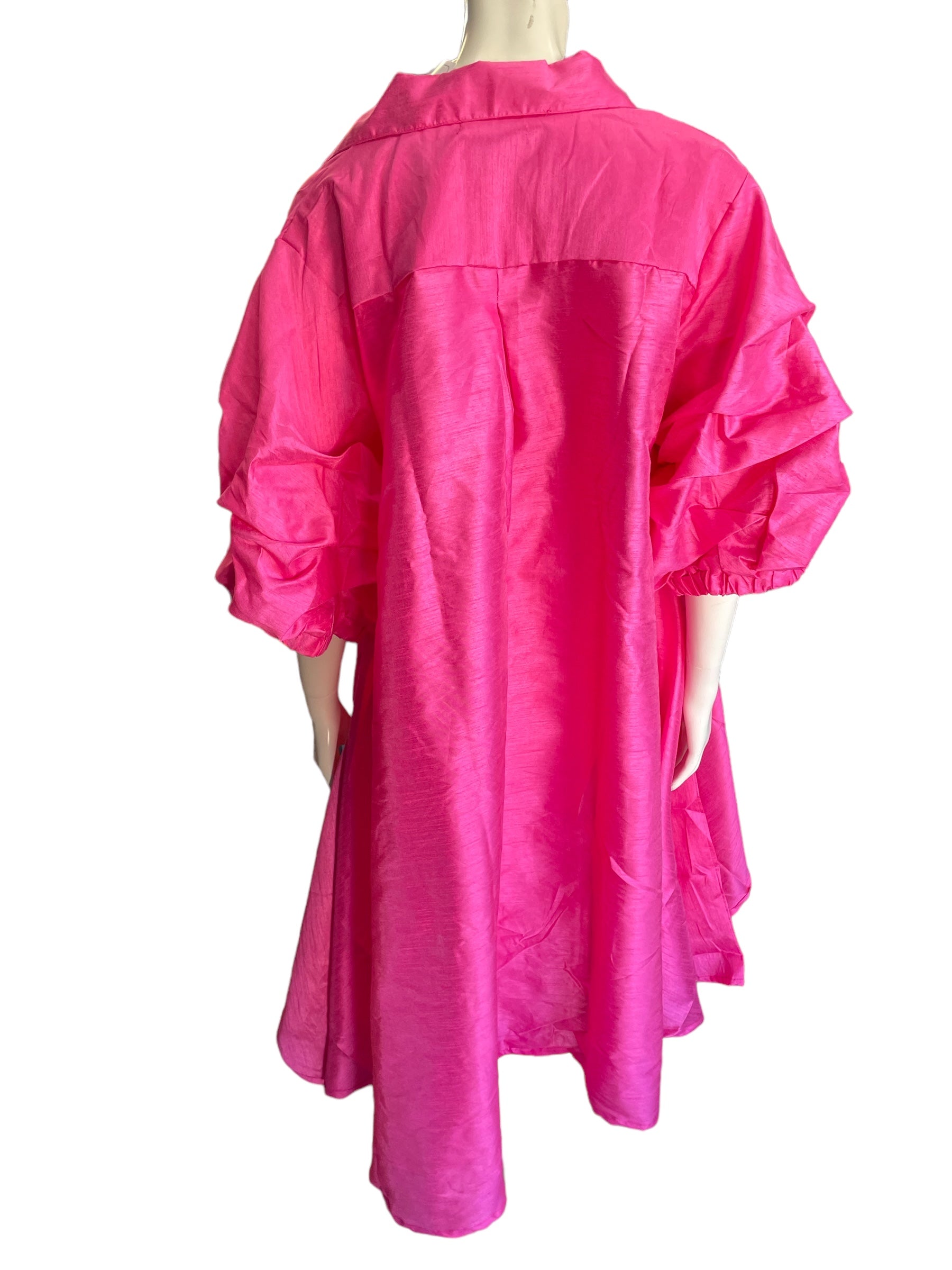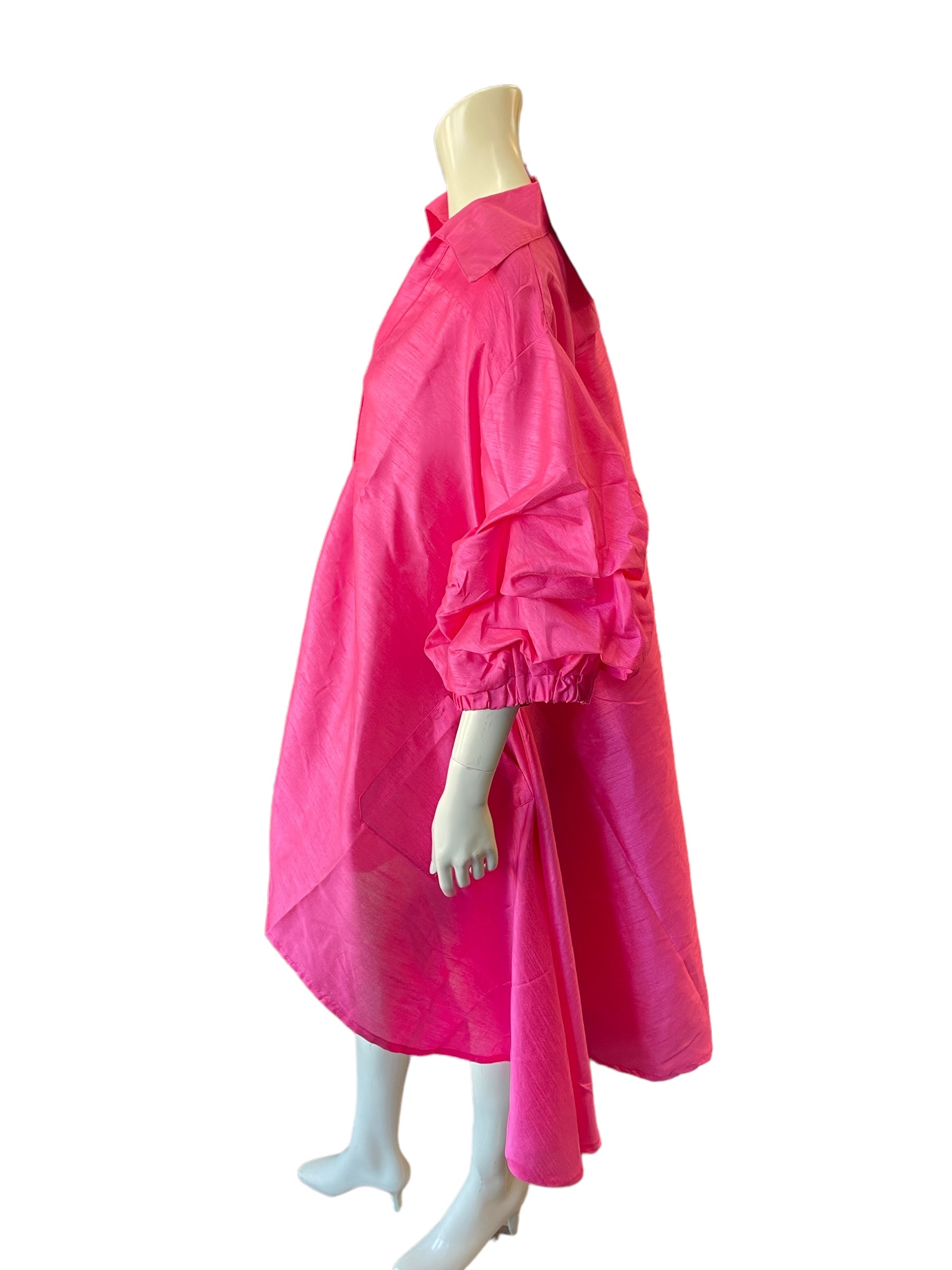 This dress is high in the front and low/longer in the back. It is a waterfall/ asymmetrical dress style.